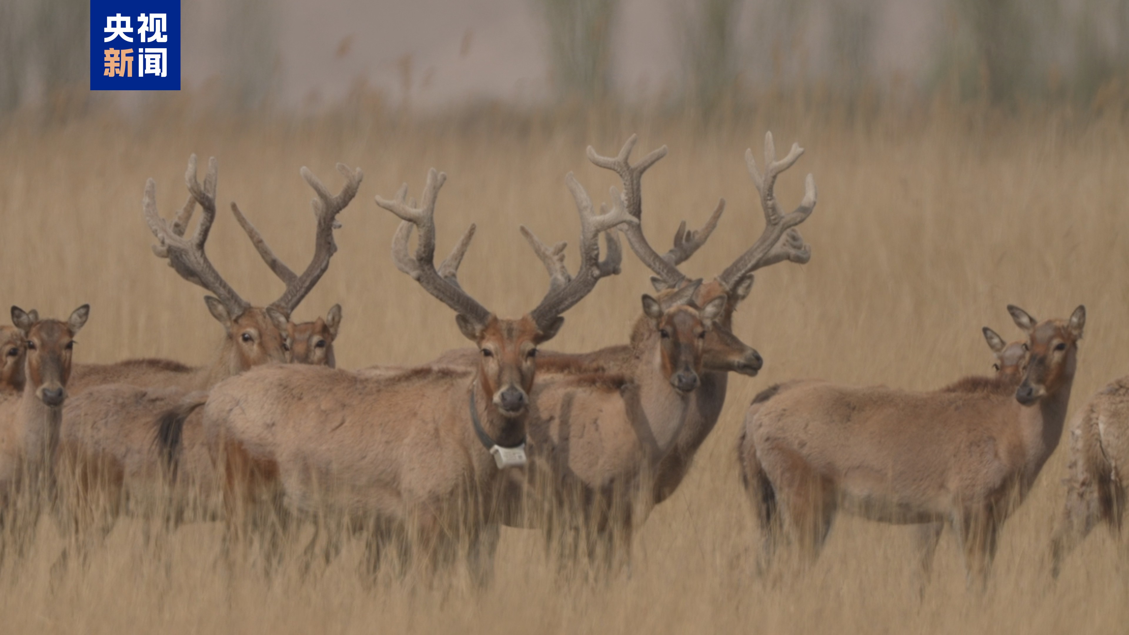 麋鹿是国家一级保护野生动物,体形较大,角形独特,喜好沼泽湿地环境。青铜峡库区湿地自然保护区作为宁夏最大的黄河滩涂湿地,十分适宜麋鹿生息繁衍。2024年9月,保护区从江苏大丰引入了35只麋鹿,其中公鹿11只、母鹿24只。目前,麋鹿们已经在宁夏完整地度过了一个严冬,适应了当地的环境气候。